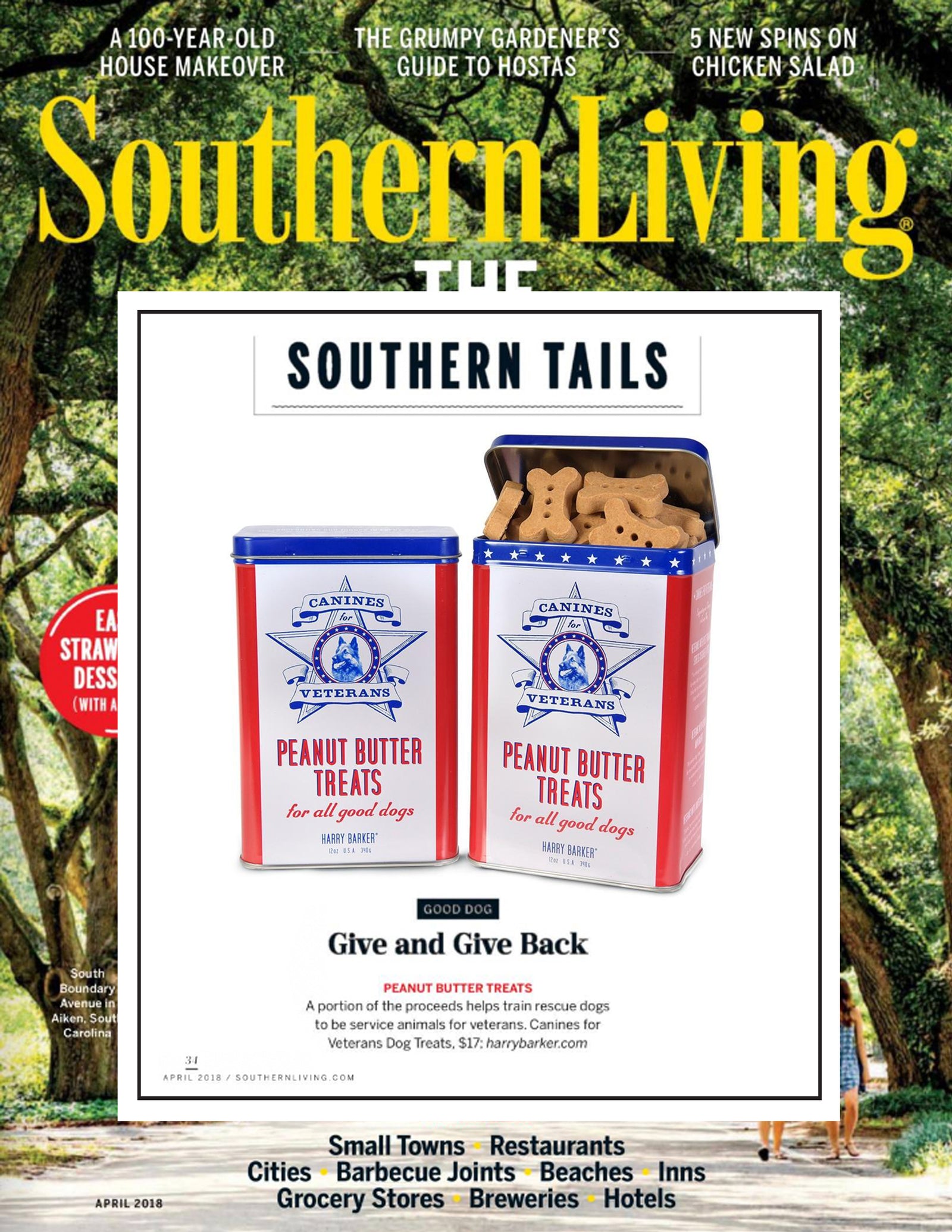 Harry Barker's Canine's for Veterans Treat Tin was featured in Southern Living in April 2018.