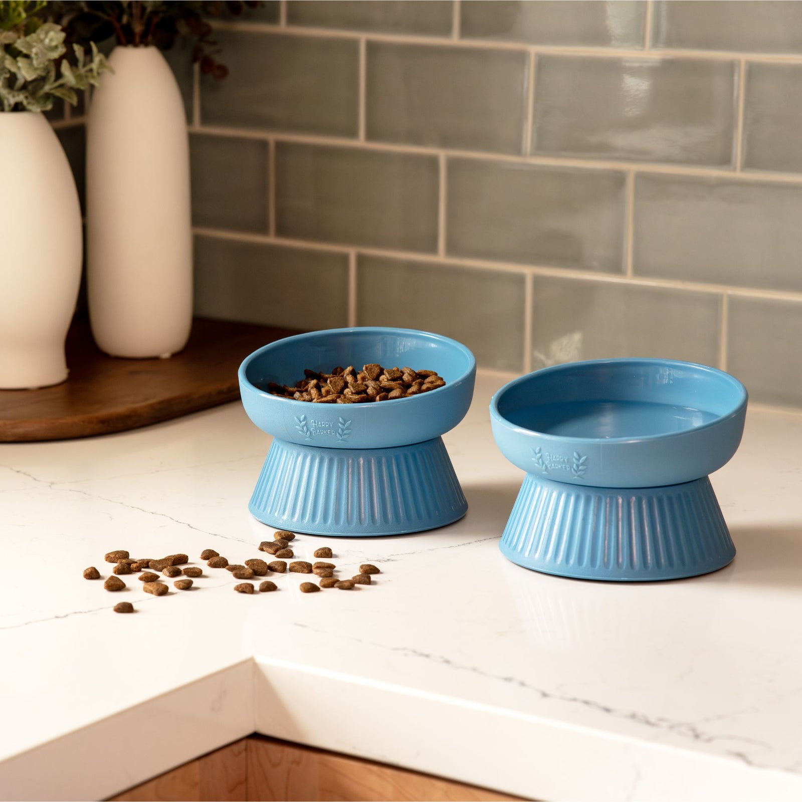 Our cat collection offers sophisticated style and function, from slanted bowls designed for a more comfortable eating experience, to scratching posts made for long-lasting entertainment.