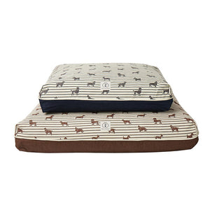 With a pup screen print on mattress ticking, this luxury dog bed cover suits every interior. Pre-shrunk and machine washable, the Ticking Dog Bed cover is polished off with a denim bottom and snappy piping.